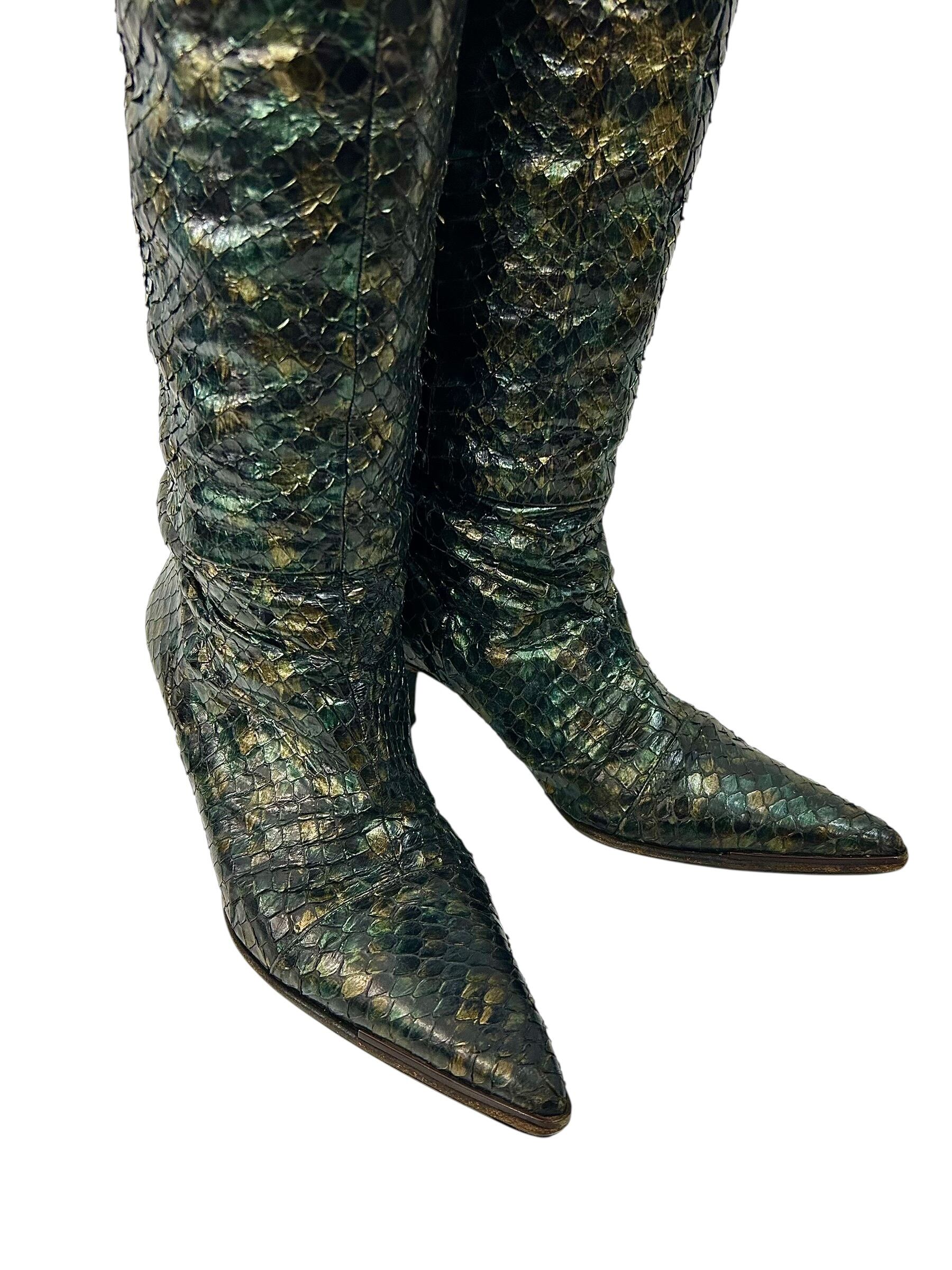 1997 GUCCI by Tom Ford Iridescent Python Knee-High Boots size : 37C