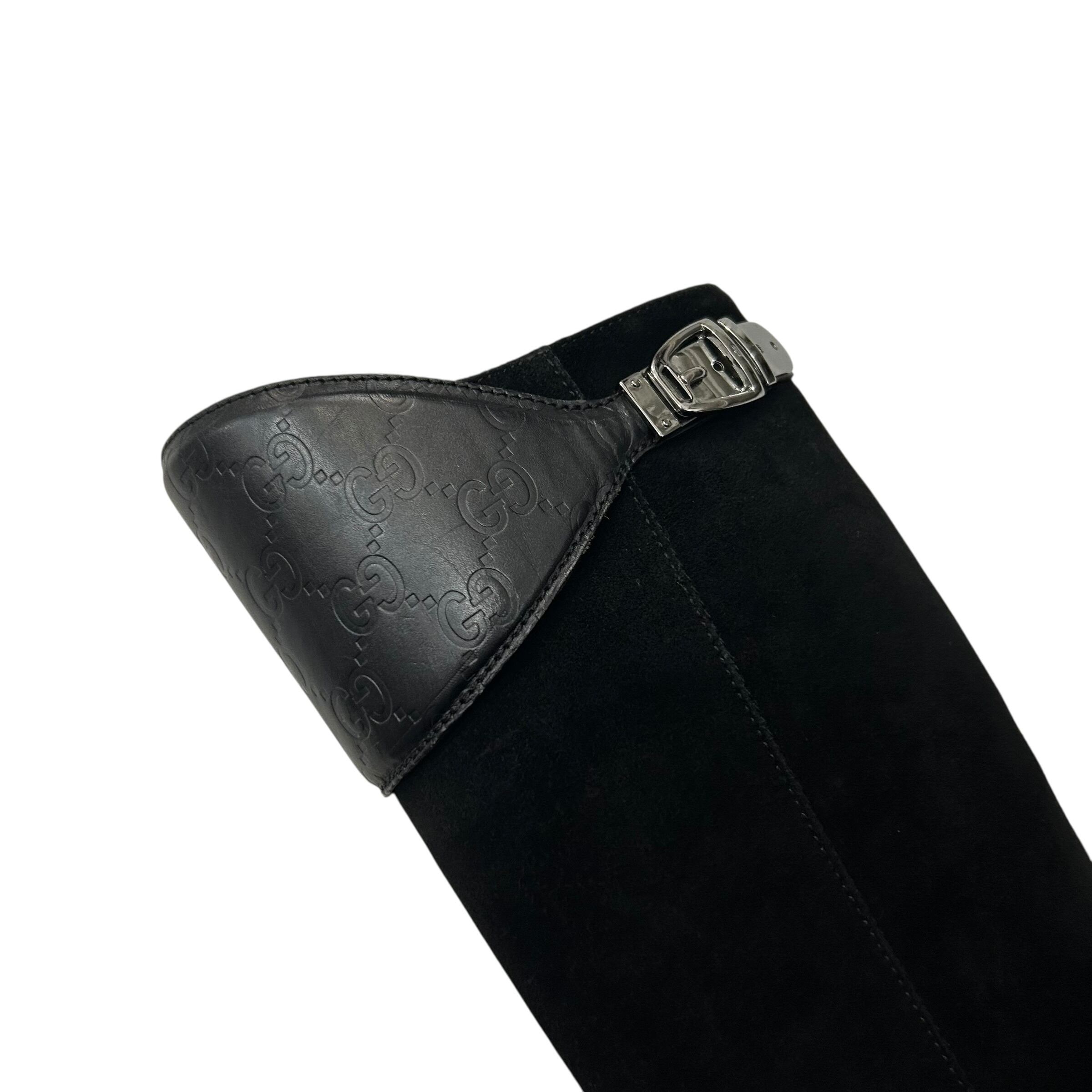 GUCCI Fall Winter 2005 GG Embossed Leather × Suede Knee-High Boots
